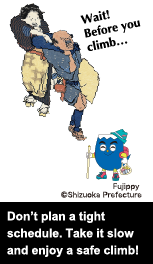 Rushing up and down Mt. Fuji in one day takes a heavy toll on the body and increases the risk of altitude sickness. Plan a loose schedule including one or more nights at a mountain hut. Getting plenty of sleep and avoiding alcohol intake on the day before your climb is also a good measure of prevention.